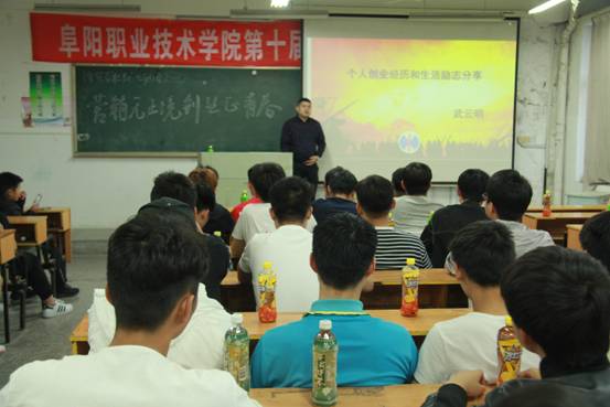 武云明结合自己近十年从事医药营销的经历,长期负责多个药品品牌的皖西北区域市场人员管理、市场开发、业务推广与产品销售等工作,给同学讲解自身如何选择行业和品牌,组建团队和经营好关系,把所学营销理论知识学以致用。他着重讲述两次创业经历,分享了自己的创业心得,强调创业要抓住机会,敢闯敢拼,有胆识,有魄力;贵在坚持,同时保持乐观的心态,怀抱一颗感恩的心,服务客户和社会。最后以生动的创业故事激励大家,创业是艰难的,创业是辛苦的,但是创业给我们带来的回忆是美好的;怕苦的人苦一辈子,不怕苦的人苦一阵子,生活没有靠山,自己就是靠山;没有天下我们自己闯天下,没有资本我们赚资本,生活就要我们逢山开道,遇水搭桥。整场报告会,赢得同学们的高度共鸣,掌声不断,精彩纷呈。
